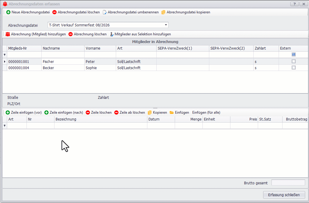 Definieren Sie individuelle Beitragsarten (z. B. Jahresbeiträge, Einzelmitglied). Ziehen Sie Beiträge bequem per SEPA-Sammellastschrift ein und verwalten Sie auch einmalige Zahlungen oder Spenden über das Abrechnungsverfahren. Das integrierte Mahnwesen hilft bei offenen Posten.