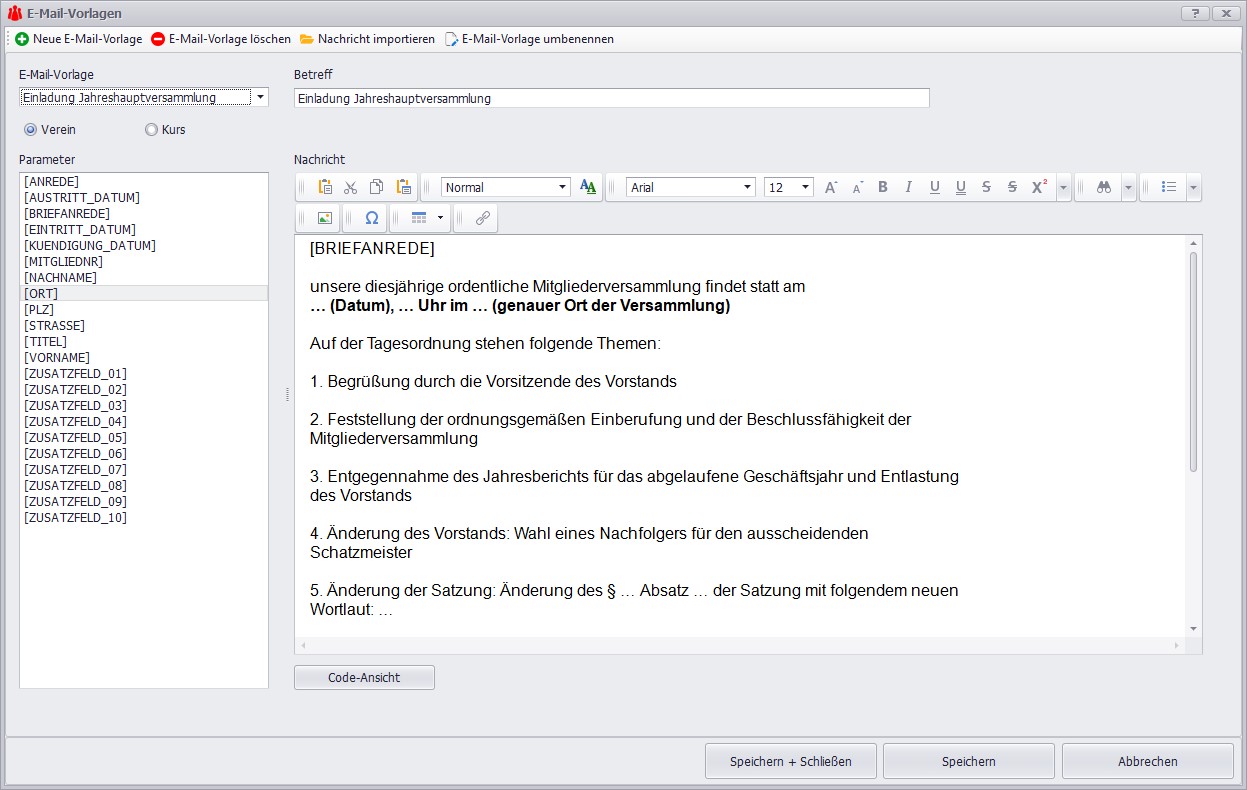 Nutzen Sie den integrierten Designer oder DIN-5008-Vorlagen und fügen Sie intelligente Platzhalter wie [Vorname]oder [Beitrag]ein, damit SPG-Verein 4 persönliche Daten automatisch in jedes Schreiben integriert.