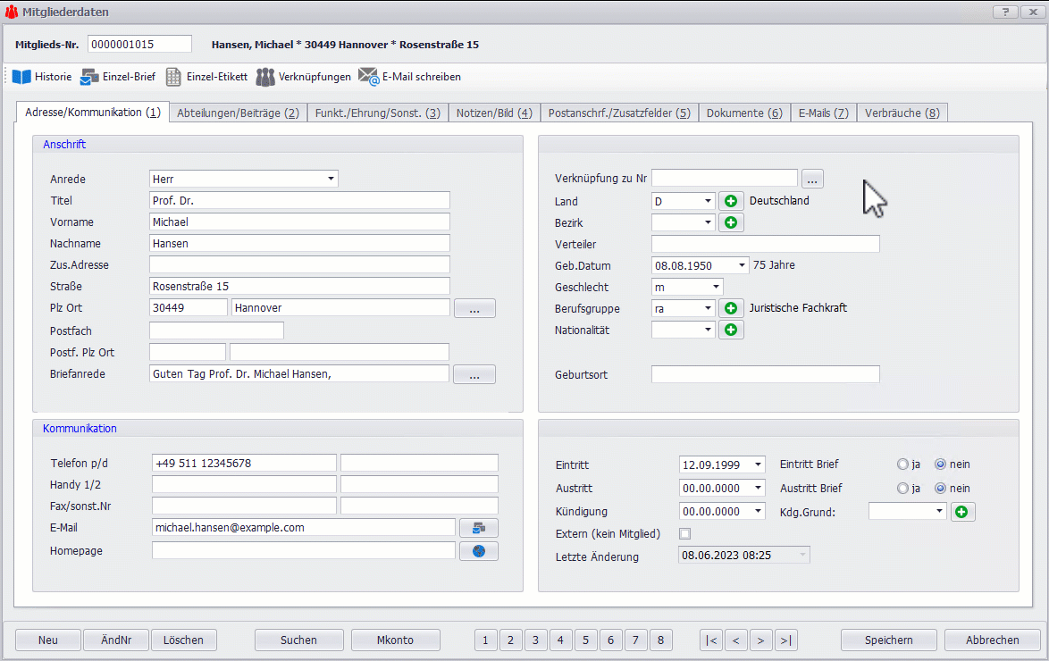 Sparen Sie Porto und informieren Sie Ihre Mitglieder schnell und kostengünstig, denn der integrierte E-Mail-Versand macht externe Tools oft überflüssig. Versenden Sie personalisierte Massen-Mails, in denen Mitglieder direkt mit Namen angesprochen werden und nutzen Sie den direkten Versand über Ihren Mailserver – Dabei lassen sich problemlos Anhänge wie PDF-Einladungen oder individuelle Rechnungen beifügen, während die Software beim hybriden Versand automatisch erkennt, wer digital erreichbar ist und für wen ein Brief gedruckt werden muss.