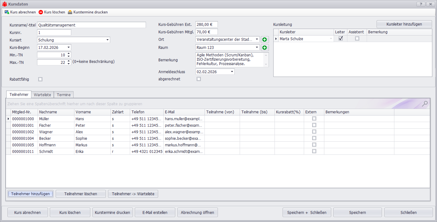 Die Abrechnung von Kursgebühren erfolgt über das bewährte Abrechnungsverfahren für variable Kosten. Kursgebühren werden dabei wie andere variable Kosten behandelt und können gesammelt über das Abrechnungsverfahren eingezogen werden, ohne dass Sie separate Buchungsschritte durchführen müssen.