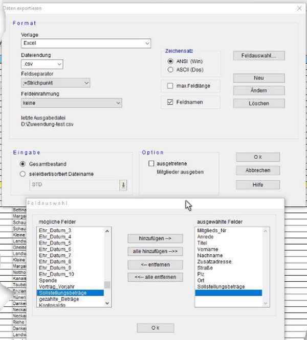 Ist es möglich die Beitragszahlungen zu exporterien? Ich bekomme nur die Gesamtzahlung nicht die einzelenen Beträge?