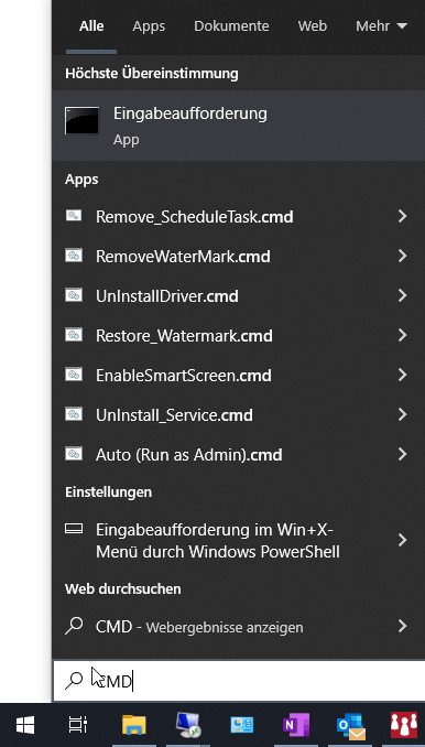 Kicken Sie unten links auf das Windows Symbol, geben CMD ein und bestätigen mit der Enter-Taste.