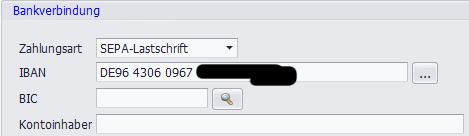 Auf die Lupe neben dem BIC Feld geklickt, bekommt man die Auswahlliste, jedoch wird keine BIC wie bei Version 3 durch Anklicken eingetragen.