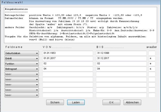 Eine Selektion aus einer Selektion gibt es hier nicht, da für die Selektion keine Bestandsdatei gebildet wird.