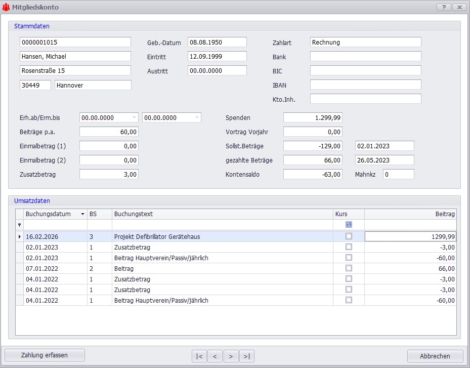 Mit der Mitgliederverwaltung in SPG-Verein 4 legen Sie alle Förderer und Sponsoren strukturiert an. Unterscheiden Sie präzise zwischen aktiven Fördermitgliedern mit regulären Jahresbeiträgen, passiven Mitgliedern, Ehrenmitgliedern und Firmensponsoren. Über die Abteilungsstruktur können Sie verschiedene Förderschwerpunkte abbilden, etwa die Unterstützung der Jugendfeuerwehr (Zeltlager, Wettkampfausrüstung), die Kameradschaftspflege (Sommerfest, Ausstattung Aufenthaltsraum), die Nachwuchswerbung (Infostände, Kinderfeuerwehr-Material) oder die Ausbildungsförderung (Speziallehrgänge, Fachliteratur). Der Förderverein finanziert dabei ausschließlich Zusatzleistungen über die kommunale Pflichtausstattung hinaus – operative Grundausstattung wie Einsatzfahrzeuge oder Atemschutzgeräte bleibt kommunale Aufgabe.