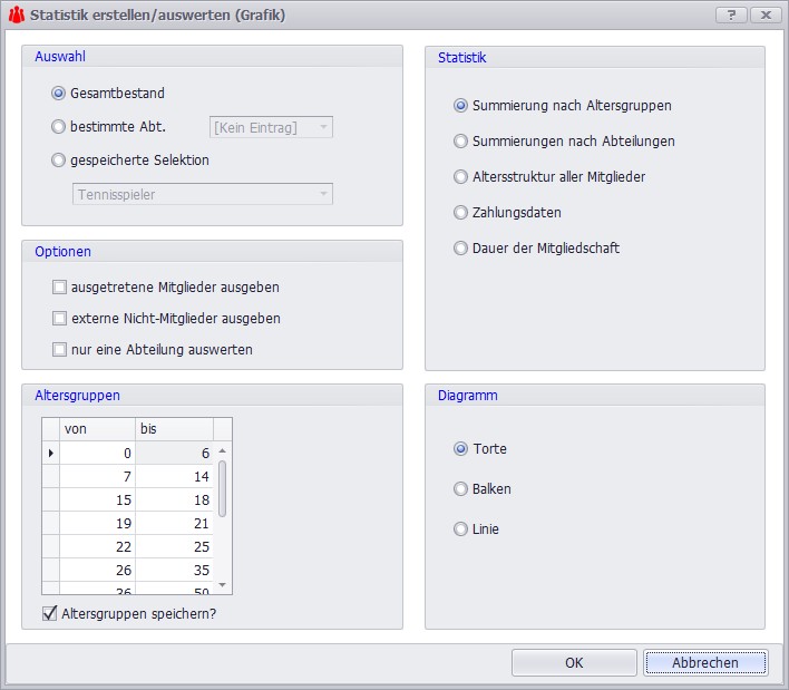 Analysieren Sie die Zusammensetzung und Entwicklung Ihres Vereins mit Leichtigkeit. Erstellen Sie detaillierte Statistiken, zum Beispiel zur Altersstruktur in verschiedenen Abteilungen, und verfolgen Sie die Mitgliederentwicklung über die Jahre. Grafische Darstellungen helfen Ihnen dabei, Trends sofort zu erkennen und Ihre Zukunftsplanung auf eine solide Datenbasis zu stellen.