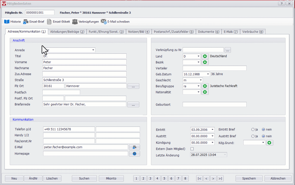 Verwalten Sie alle Stammdaten, Abteilungszugehörigkeiten, Beiträge und die gesamte Historie Ihrer Mitglieder.
