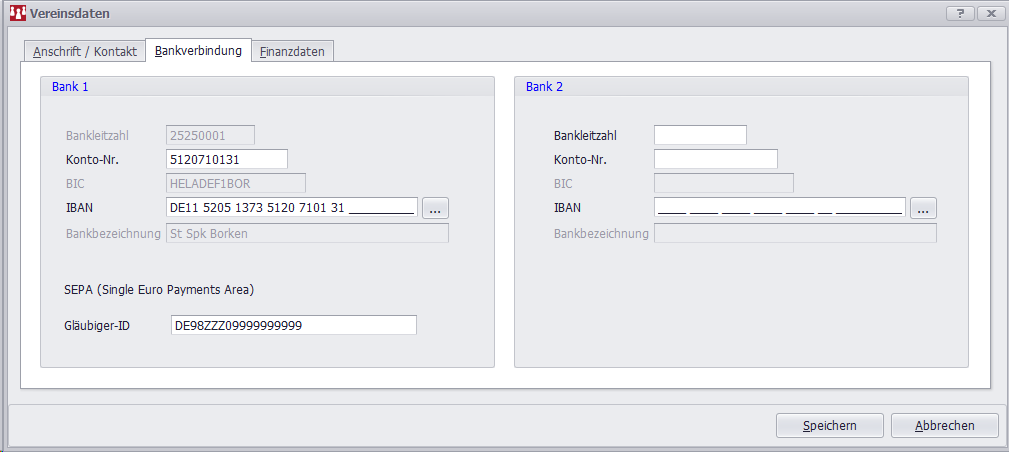 Sie haben die Möglichkeiten, 2 Bankverbindungen zu hinterlegen. Dies kann u.U. dafür genutzt werden, wenn z.B. die Beiträge und Abrechnungen auf unterschiedliche Vereinkonten geführt werden.