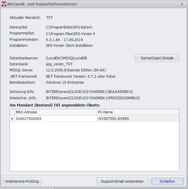 Am Mandant (Bestand) TST angemeldete Clients:
